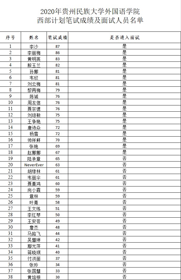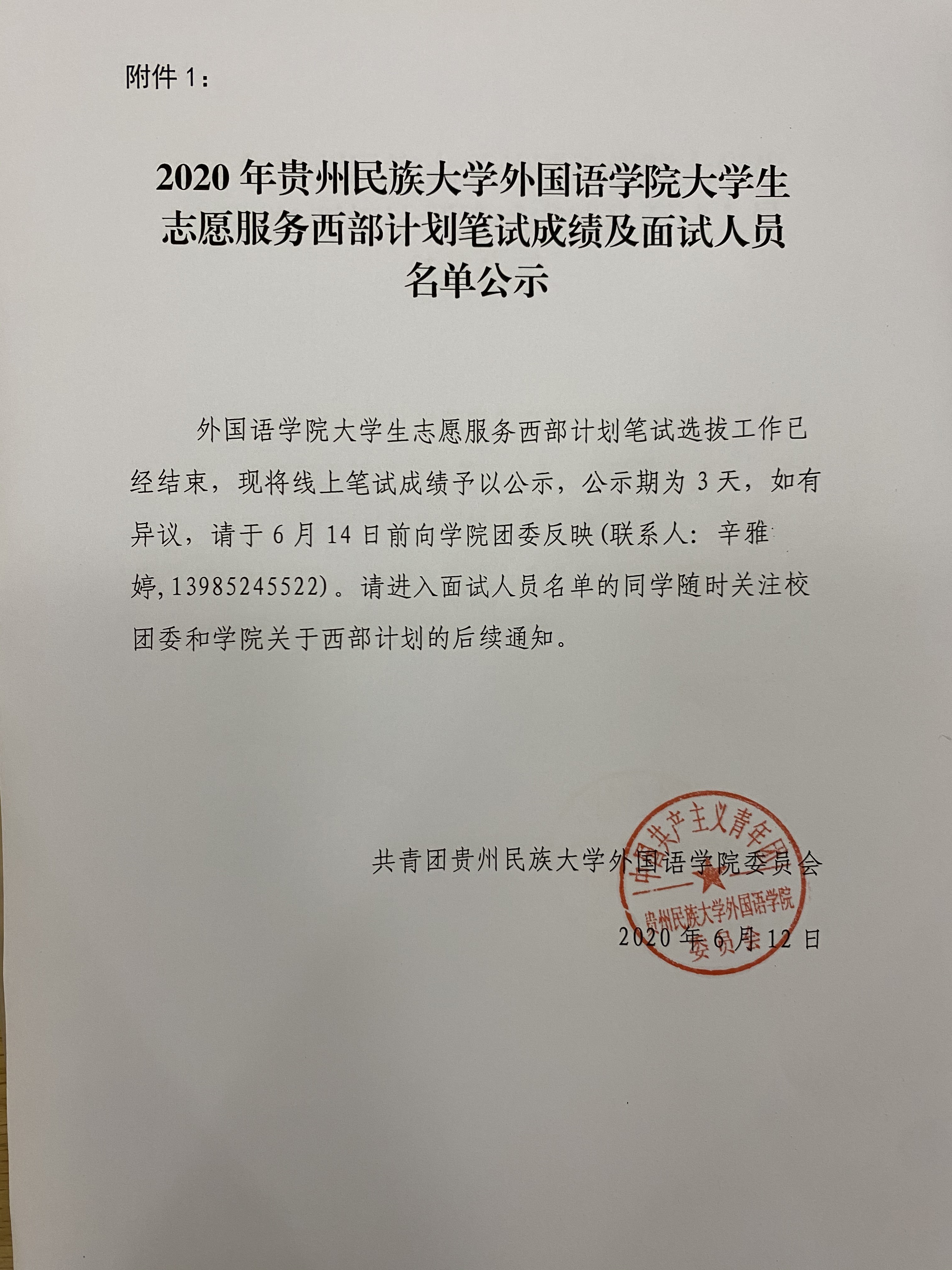 2020年BB手机客户端大学生志愿服务西部计划笔试成绩及面试人员名单公示